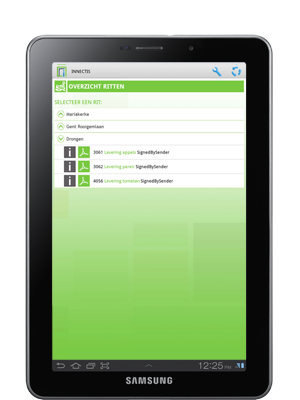 De (android) tablet wordt gebruikt door de chauffeur om zijn trajecten, ritten en vrachtbrieven te consulteren. De app is continu in verbinding met het Innectis platform via 3G of WIFI. De chauffeur kan zelf commentaar toevoegen (bv. bij schade) en ondertekent de documenten digitaal. Hij laat de documenten ook door de ontvanger digitaal ondertekenen.